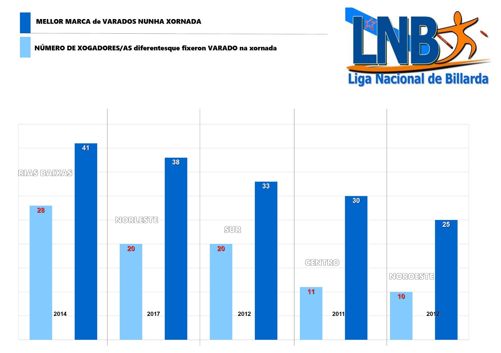 Os datos históricos confirman que cantos máis participantes na xornada máis posibilidades de facer un maior número de varados totais. Así, a Conferencia Rías Baixas (a máis numerosa da LNB) ten a marca absoluta de VARADOS nunha xornada cun total de 41, moi cerca están os 38 da Conferencia Norleste, feitos en Meira a temporada pasada. Despois estaría a Conferencia Noroeste con 25 varados. Outras conferencias desaparecidas quedáronse en 33 Sur e 30 Centro.